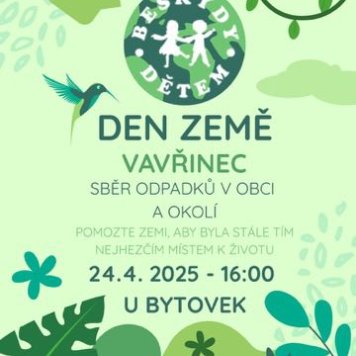 pojďte si s námi užít den Země! Dorazte ve čtvrtek 24. 4. 2025 v 16:00 k bytovkám ve Vavřinci a pomozte nám ve sběru odpadků, aby Země byla stále tím nejhezčím místem k životu 🙂 Těšíme se na Vás!