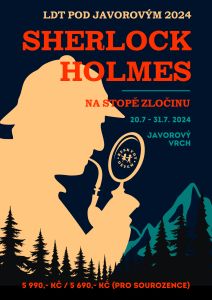 Téma letošního tábora bude detektivní - Sherlock Holmes - Na stopě zločinu. Děti budou muset zapojit svůj pozorovací talent, schopnost dedukce a důvtip při řešení zapeklitého případu. Společně prožijeme spoustu zábavy a zároveň dobrodružství! Opět se sejdeme na našem tábořišti Pod Javorovým vrchem.